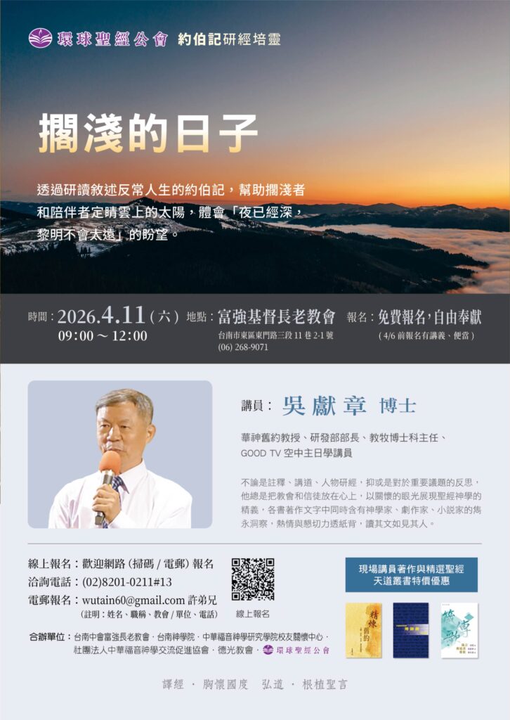 2026年4月11日吳獻章博士聖經講座 (台南富強基督長老教會) 點我報名:https://reurl.cc/..