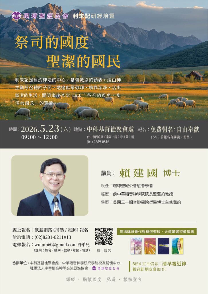 2026年5月23日賴建國博士聖經講座 (台中基督徒聚會處) 點我報名:https://reurl.cc/pK..